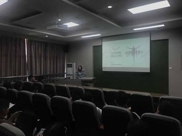 為了給即將跨入考場的2019屆考研學(xué)生舒緩壓力,調(diào)整心態(tài),提供寶貴的考研沖刺經(jīng)驗,2018年11月21日下午,在藥學(xué)院三樓報告廳由校企合作辦和學(xué)生科共同舉辦了《攻克研路、陪你沖刺》考研分享報告會,邀請2018屆考取研究生的優(yōu)秀校友劉玉枝、劉宇波返回母校助學(xué)弟學(xué)妹一臂之力,陪同沖刺。藥學(xué)院黨總支副書記呂忠田、校企合作辦全體老師、畢業(yè)班輔導(dǎo)員及考研學(xué)生參加了此次報告會。 報告會開始之前,藥學(xué)院黨總支副書記呂忠田和校企合作辦主任閆平均對考研學(xué)生加油鼓勵,建議考研學(xué)生放松壓力,平衡好時間,勞逸結(jié)合,堅持到最后。