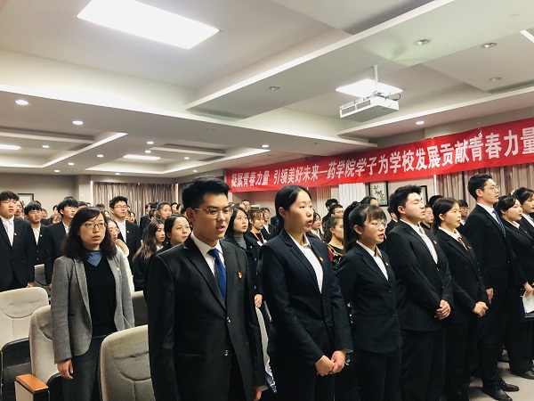 伴隨著莊嚴(yán)而神圣的國歌聲,會議正式拉開帷幕。會議伊始,王黎副書記致辭,她首先對大會的隆重召開表示祝賀,講到:團(tuán)總支、學(xué)生會是組織引導(dǎo)廣大同學(xué)發(fā)揮積極性,創(chuàng)造性,為實現(xiàn)夢想而拼搏的舞臺,更是學(xué)習(xí)工作,互帶互助的大家庭。藥學(xué)院團(tuán)總支、學(xué)生會在校團(tuán)委及學(xué)院黨政的領(lǐng)導(dǎo)下,一直以來堅持務(wù)實創(chuàng)新的工作風(fēng)格,本著為學(xué)生服務(wù)的宗旨,結(jié)合學(xué)院實際、學(xué)生實際,不斷加強自身建設(shè),開展了各種促進(jìn)發(fā)展、內(nèi)容豐富、健康向上的工作與活動。希望在今后的工作中,藥學(xué)院團(tuán)總支、學(xué)生分會繼續(xù)帶領(lǐng)全院團(tuán)員青年,奮發(fā)努力、共同前進(jìn)。