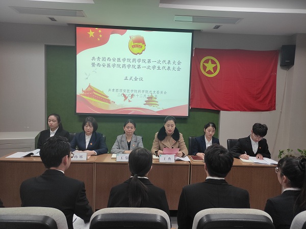 12月17日下午,共青團(tuán)西安醫(yī)學(xué)院藥學(xué)院第一次代表大會暨西安醫(yī)學(xué)院藥學(xué)院第一次學(xué)生代表大會于我院學(xué)術(shù)報告廳順利召開。校團(tuán)委書記王燕,藥學(xué)院黨總支副書記王黎、學(xué)生科科長楊欣雨、團(tuán)總支書記楊娜,陜西中醫(yī)藥大學(xué)藥學(xué)院張巖麗老師以及藥學(xué)院團(tuán)學(xué)代表團(tuán)體代表出席大會。