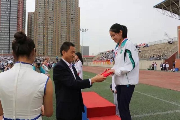 女子跳遠(yuǎn)比賽中徐婷同學(xué)獲得第二名的好成績。
