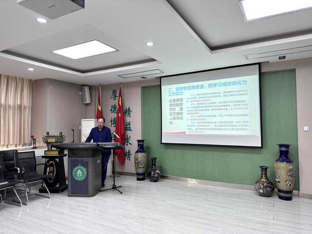 他指出,加快推進(jìn)教育現(xiàn)代化、建設(shè)教育強(qiáng)國、辦好人民滿意的教育,努力培養(yǎng)擔(dān)當(dāng)民族復(fù)興大任的時代新人,培養(yǎng)德智體美勞全面發(fā)展的社會主義建設(shè)者和接班人是黨的二十大關(guān)于教育的重要戰(zhàn)略部署。藥學(xué)院黨員教師要進(jìn)一步堅定理想信念,加強(qiáng)學(xué)習(xí)、提升修養(yǎng),切實增強(qiáng)“四個意識”、堅定“四個自信”、做到“兩個維護(hù)”,將個人價值實現(xiàn)融入國家發(fā)展戰(zhàn)略之中。藥學(xué)院將繼續(xù)秉持以學(xué)生為中心的理念,以學(xué)生成長成才為目標(biāo),切實把主題教育與日常中心工作相結(jié)合,以更好的精神狀態(tài)、更實的工作作風(fēng),育好時代新人,為學(xué)校高質(zhì)量發(fā)展賦能。