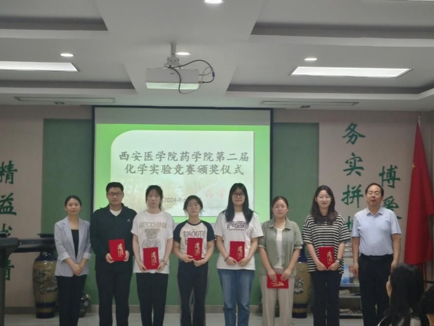 6月4日下午,備受矚目的化學實驗競賽頒獎儀式在藥學院三樓會議室隆重舉行。本次競賽旨在“以賽促教、以賽促學”,化學實驗競賽不但可以促進實驗教學改革,提高實驗教學質量和水平,而且可以激發(fā)學生對化學學科的興趣,提升他們的實驗技能和科學素養(yǎng),為學生未來的職業(yè)發(fā)展奠定堅實的基礎。經過激烈的角逐,22名優(yōu)秀學子脫穎而出,分別獲一、二、三等獎。出席本次頒獎儀式的有校黨委副書記楊卓虎、藥學院處科級干部和各支部書記、部分教師代表以及獲獎學生。