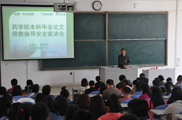 為了做好西安醫(yī)學院創(chuàng)建“平安校園”、“文明校園”建設(shè)工作,嚴抓實踐教學安全與紀律,藥學院于2016年3月31日在教學樓一層階梯大教室召開了本科畢業(yè)論文帶教指導安全宣講會,藥學院全體畢業(yè)論文帶教指導老師、2016屆在校本科畢業(yè)實習生參加了會議。