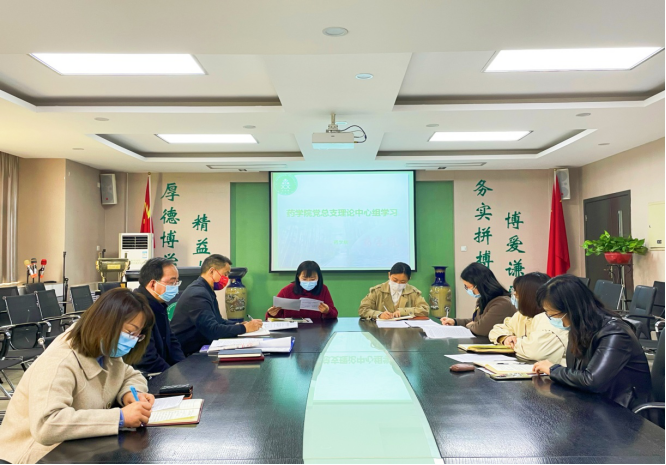 3月30日上午,藥學(xué)院黨總支理論學(xué)習(xí)中心組在立德樓三層黨員活動室召開學(xué)習(xí)交流會,會議由黨總支書記王黎主持,黨總支委員及處級干部全員參加,分兩個階段進行。