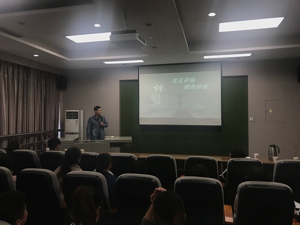 為了給即將跨入考場(chǎng)的2019屆考研學(xué)生舒緩壓力,調(diào)整心態(tài),提供寶貴的考研沖刺經(jīng)驗(yàn),2018年11月21日下午,在藥學(xué)院三樓報(bào)告廳由校企合作辦和學(xué)生科共同舉辦了《攻克研路、陪你沖刺》考研分享報(bào)告會(huì),邀請(qǐng)2018屆考取研究生的優(yōu)秀校友劉玉枝、劉宇波返回母校助學(xué)弟學(xué)妹一臂之力,陪同沖刺。藥學(xué)院黨總支副書記呂忠田、校企合作辦全體老師、畢業(yè)班輔導(dǎo)員及考研學(xué)生參加了此次報(bào)告會(huì)。 報(bào)告會(huì)開始之前,藥學(xué)院黨總支副書記呂忠田和校企合作辦主任閆平均對(duì)考研學(xué)生加油鼓勵(lì),建議考研學(xué)生放松壓力,平衡好時(shí)間,勞逸結(jié)合,堅(jiān)持到最后。