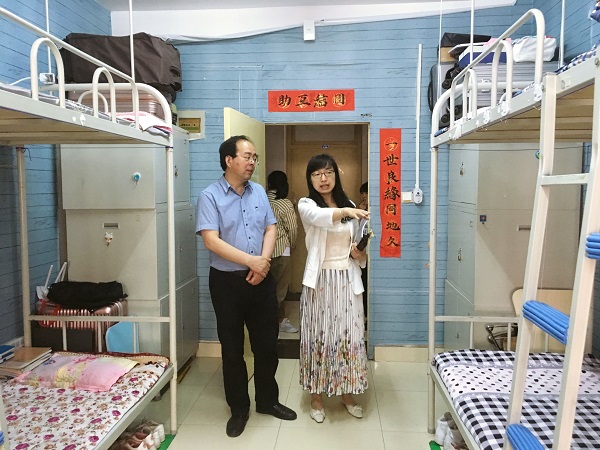 2019年5月21日下午,藥學(xué)院黨總支副書記馮永輝、學(xué)生科長楊欣雨、輔導(dǎo)員老師及部分輔導(dǎo)員助理深入學(xué)生宿舍,進(jìn)行實(shí)況查看、打分,重點(diǎn)查看用電安全情況。在走訪中,馮書記耐心細(xì)致地與學(xué)生交談,關(guān)注同學(xué)們學(xué)習(xí)、生活中存在的問題,對(duì)部分干凈、整潔、學(xué)習(xí)氛圍濃厚、文化特色鮮明的宿舍提出表揚(yáng)。