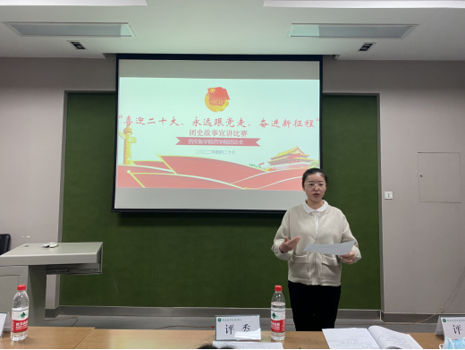 為學(xué)習(xí)宣傳貫徹黨的二十大,慶祝中國(guó)共青團(tuán)成立100周年,為深入貫徹習(xí)近平總書記重要講話精神,學(xué)習(xí)黨領(lǐng)導(dǎo)青年運(yùn)動(dòng)的光輝歷史,把握共青團(tuán)在黨的領(lǐng)導(dǎo)下帶領(lǐng)一代代青年奮斗的光輝歷程,增強(qiáng)永遠(yuǎn)跟黨走的信念,藥學(xué)院團(tuán)總支于4月27、28日舉辦“重溫百年團(tuán)史,傳承紅色基因”團(tuán)史故事宣講比賽。出席本次比賽的嘉賓有:藥學(xué)院團(tuán)總支書記楊娜、輔導(dǎo)員韓旭芳、魏豐老師以及觀賽的22名團(tuán)干部。本次比賽共37名選手參賽。