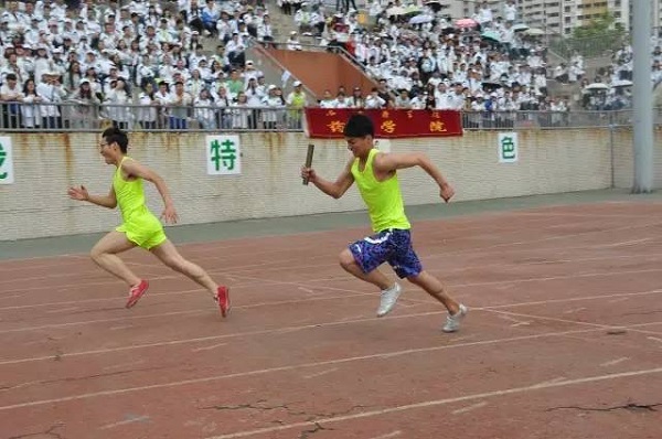 男子4x100米決賽中,藥學(xué)院的兩支隊(duì)伍奮勇拼搏、齊心協(xié)力,獲得第一名和第三名的好成績。