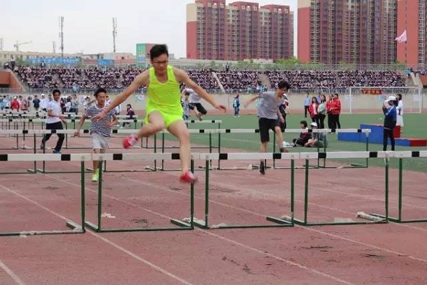 男子110米欄決賽,周宏同學(xué)好似離弦之箭向終點(diǎn)進(jìn)發(fā),將其他運(yùn)動(dòng)員甩在身后,敏捷地跨越過重重障礙,最終贏得桂冠!