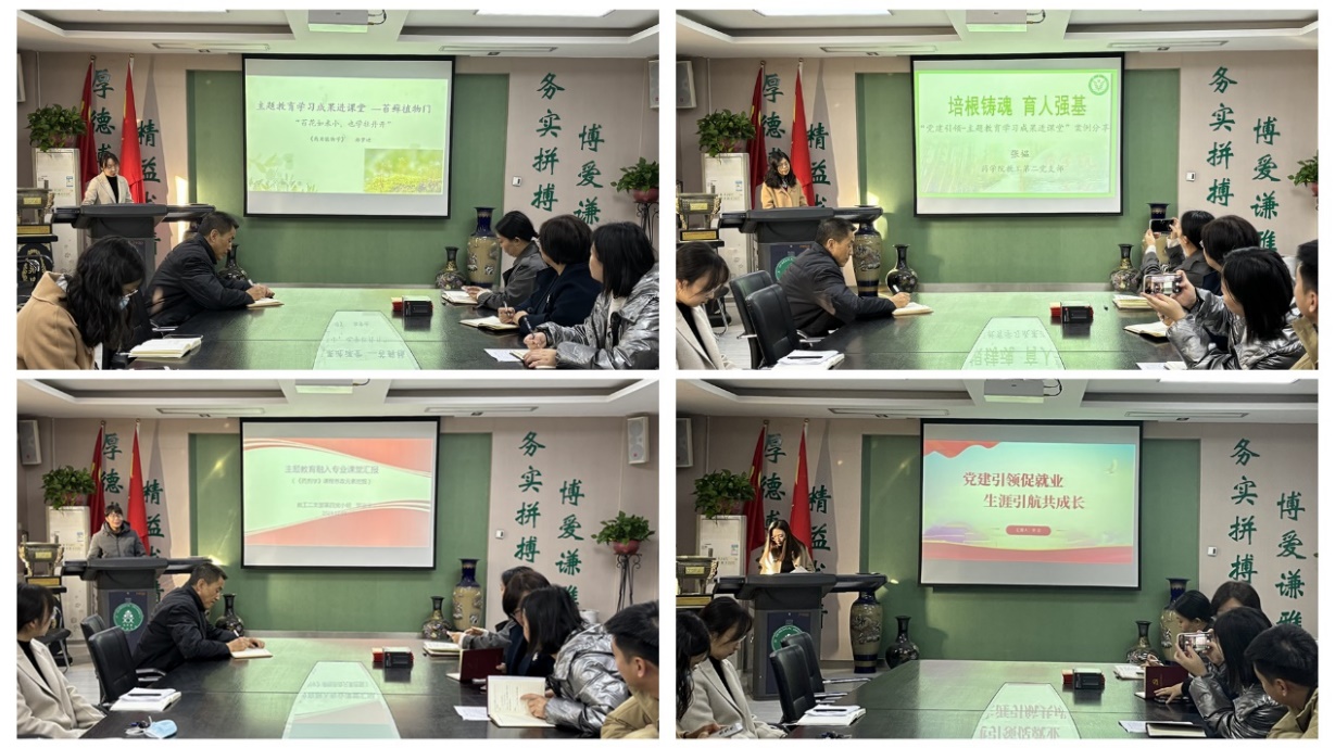 主題教育學習成果進課堂比賽活動收到參賽講稿達46份,經(jīng)過支委會評選,生藥藥理黨小組鄭夢迪、分析藥分黨小組張韞、藥劑黨小組羅國平、行政學生工作黨小組李潔等四位老師獲評優(yōu)秀講稿,進行現(xiàn)場匯報展示。鄭夢迪以“苔花如米小,也學牡丹開”為題,介紹了如何在《藥用植物學》課程中通過古詩與專業(yè)知識的碰撞,無縫嵌入傳統(tǒng)文化與個人價值體現(xiàn),激發(fā)學生對傳統(tǒng)文化的興趣;張韞以“培根鑄魂,育人強基”為背景分享了《分析化學》課程中“熒光分析法”教學過程中融合的主題教育中的社會主義核心價值觀;羅國平從五個層面講解了《藥劑學》課程中育人思政元素的挖掘;李潔基于自己講授的《大學生職業(yè)生涯規(guī)劃》等課程,開展了以“黨建引領促就業(yè),生涯引航共成長”為題的主題教育學習成果在就業(yè)指導課程中的體現(xiàn)。