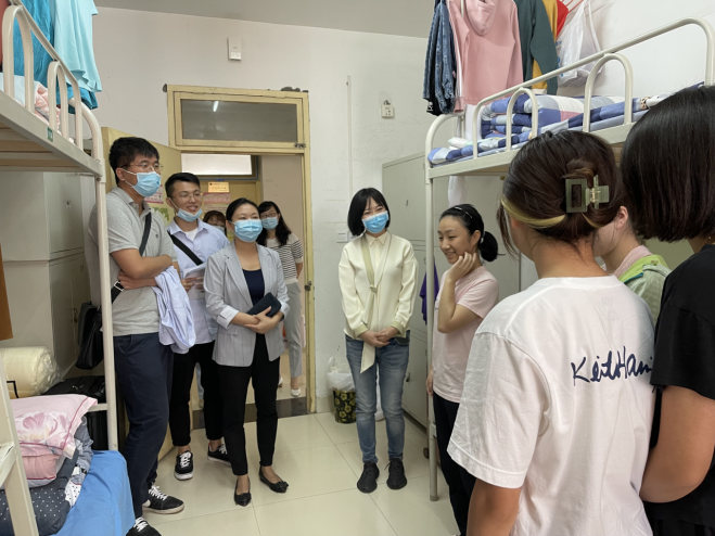 9月8日上午,藥學院黨政、學生黨支部書記及新生輔導員一行走訪了6號樓男生公寓和8號樓女生公寓,深入了解學生報到入住情況,并送去學校的關懷與溫暖。走訪過程中,每到一個宿舍,秦蓓院長與王黎副書記都與學生親切交談,關心學生對新環(huán)境的適應、生活條件以及對所學專業(yè)的了解等情況,通過和學生談論家鄉(xiāng)特色、興趣愛好等話題拉近與學生的距離,暢通師生溝通渠道。整個交談過程,氣氛輕松愉悅,學生也放下拘束,交談甚歡。走訪過程中,藥學院迎新團隊也檢查了新生寢室設施安全,叮囑學生嚴格按照宿舍規(guī)定擺放個人物品,提醒用電安全、出行安全,做好防騙防盜、拒絕推銷等相關工作。走訪結束時,老師們對新同學們提出幾點希望,希望大家及時調整狀態(tài),盡快融入大學生活,努力學習提升自身綜合素質,培養(yǎng)發(fā)現(xiàn)問題、解決問題的能力,通過大學的四年歷練奔赴更精彩的人生。(文/圖 魏豐)