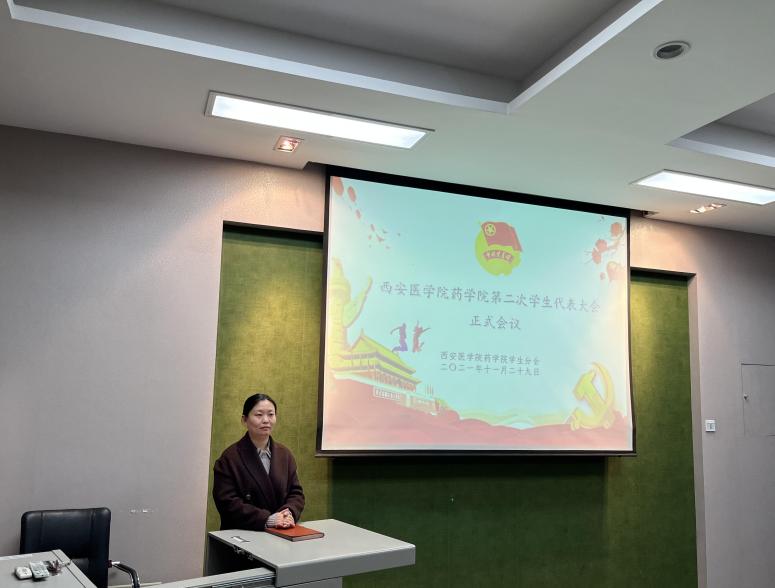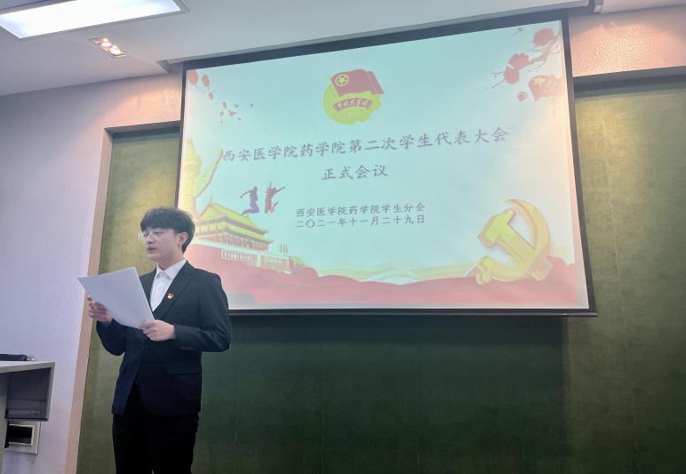 2021年11月29日,西安醫(yī)學(xué)院藥學(xué)院第二次學(xué)生代表大會在立德樓三層報告廳順利召開。出席本次會議的嘉賓有藥學(xué)院黨總支書記王黎、校團委書記韓文霞、藥學(xué)院學(xué)生科科長楊欣雨、藥學(xué)院團總支書記楊娜,44名藥學(xué)院學(xué)生代表參加大會。