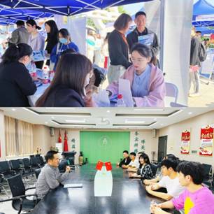 招聘會(huì)中,來校醫(yī)藥企業(yè)招聘負(fù)責(zé)人仔細(xì)詢問畢業(yè)生的就業(yè)意向,對(duì)藥學(xué)院2023屆畢業(yè)生的整體素質(zhì)與綜合能力表示滿意,希望同學(xué)們能多參與實(shí)踐活動(dòng),不斷積累經(jīng)驗(yàn)、提升自我。前來應(yīng)聘的畢業(yè)生與用人單位積極交流、自信面試。