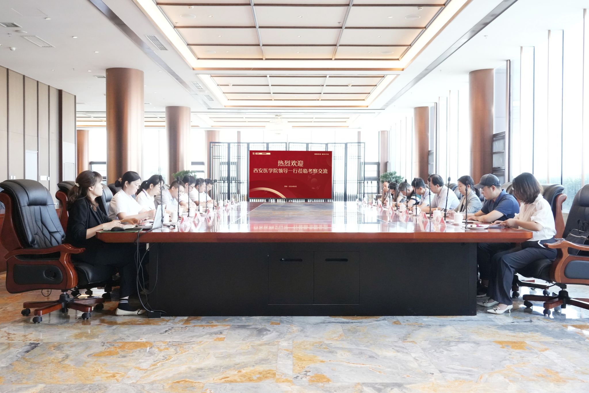 金花股份營(yíng)銷中心總監(jiān)徐建林、金花制藥廠副總經(jīng)理陳建華、金花股份研發(fā)總工蔡慧俠、市場(chǎng)醫(yī)學(xué)總監(jiān)李靜及人力資源部副經(jīng)理郭軍平參加校企交流,藥學(xué)院黨政負(fù)責(zé)人、專業(yè)負(fù)責(zé)人、教師及輔導(dǎo)員代表參加走訪活動(dòng)。(藥學(xué)院 文/閆平 圖/金花股份 審核/王黎)