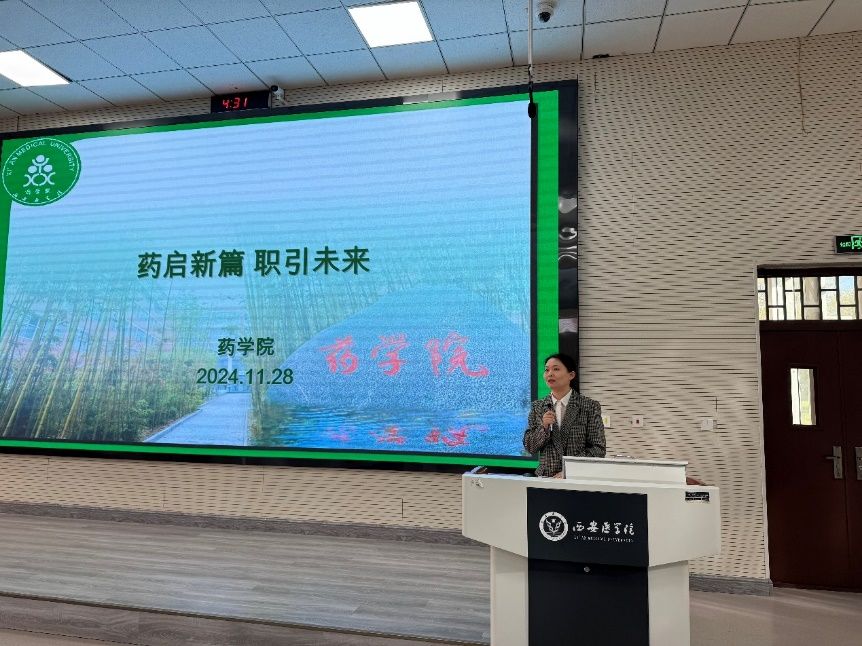 11月28日,藥學(xué)院邀請行業(yè)專家藥云醫(yī)藥公司創(chuàng)始人毛幼樺董事長研發(fā)團隊、西安市食品藥品檢驗所單敏主任藥師作為主講嘉賓在教一階梯教室舉辦“藥啟新篇 職引未來”系列之藥品質(zhì)量評價專場講座。省級一流課程--藥物分析課程組全體教師、2021級藥學(xué)專業(yè)300余名學(xué)生參加講座。講座由藥學(xué)院黨總支書記王黎主持。