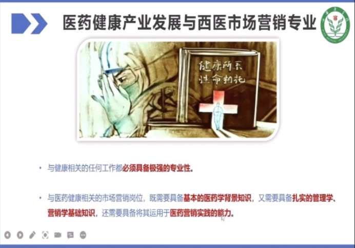 市場營銷專業(yè)負(fù)責(zé)人曹璞副教授從市場營銷專業(yè)簡介、醫(yī)藥健康產(chǎn)業(yè)發(fā)展與西醫(yī)市場營銷專業(yè)特色及西醫(yī)市場營銷專業(yè)就業(yè)前景三個(gè)方面對2022級新生進(jìn)行了詳細(xì)的專業(yè)介紹,讓新生對所學(xué)專業(yè)有了清晰、明確的認(rèn)識。