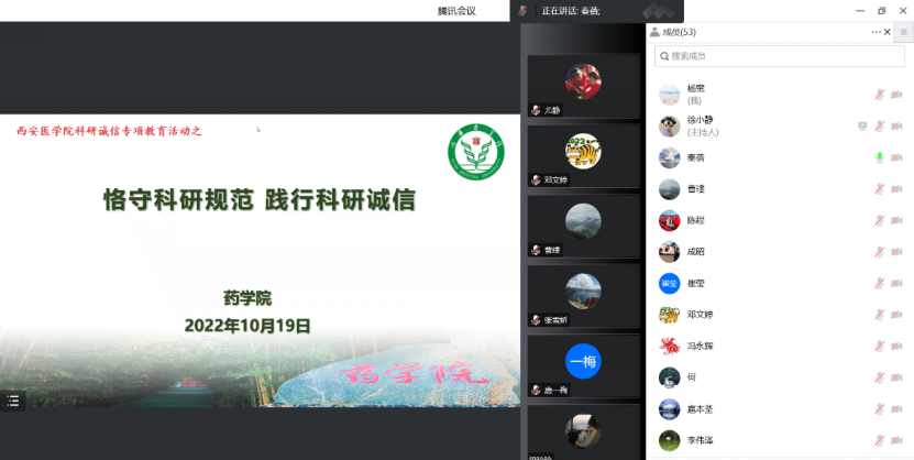 為了更進(jìn)一步加強(qiáng)科研人員誠信意識,規(guī)范科研行為,持續(xù)改進(jìn)科研作風(fēng),營造誠實(shí)守信的科研環(huán)境,藥學(xué)院于2022年10月19日中午14:00召開了主題為“恪守科研規(guī)范 踐行科研誠信”的線上專題會議,藥學(xué)院全體黨政班子及全體教師參加了會議。