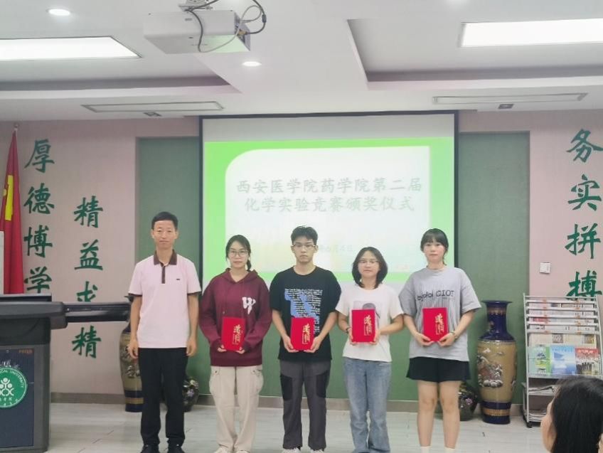 6月4日下午,備受矚目的化學實驗競賽頒獎儀式在藥學院三樓會議室隆重舉行。本次競賽旨在“以賽促教、以賽促學”,化學實驗競賽不但可以促進實驗教學改革,提高實驗教學質量和水平,而且可以激發(fā)學生對化學學科的興趣,提升他們的實驗技能和科學素養(yǎng),為學生未來的職業(yè)發(fā)展奠定堅實的基礎。經過激烈的角逐,22名優(yōu)秀學子脫穎而出,分別獲一、二、三等獎。出席本次頒獎儀式的有校黨委副書記楊卓虎、藥學院處科級干部和各支部書記、部分教師代表以及獲獎學生。