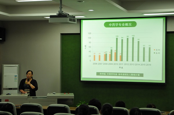 9月19日,中藥學(xué)專業(yè)負(fù)責(zé)人孫艷平副教授對2016級中藥學(xué)專業(yè)新生進(jìn)行了專業(yè)教育,主要介紹了藥學(xué)院的組織機(jī)構(gòu)、實驗教學(xué)、科研平臺、中藥學(xué)專業(yè)師資情況,重點(diǎn)介紹了中藥學(xué)專業(yè)學(xué)分分配以及取得學(xué)位應(yīng)該滿足的學(xué)分要求,中藥學(xué)專業(yè)人才培養(yǎng)方案及其課程構(gòu)成模塊,并舉例以圖解的方式對具體課程相關(guān)性進(jìn)行講解,使學(xué)生對所學(xué)專業(yè)有了一個初步的認(rèn)識和了解。