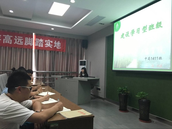 2016年6月20日,中藥本1411班建設學習型班級交流會于藥學院學術報告廳召開。藥學院院長秦蓓教授出席本次會議并與同學們親切交流。中藥1411班全體同學和輔導員李冰老師參加了本次會議。