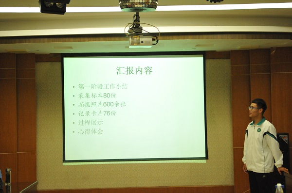 匯報(bào)會(huì)開始前首先觀賞了陜西太白山國家級(jí)自然保護(hù)區(qū)管理局提供的紀(jì)錄片《太白魂》,通過視頻大家領(lǐng)略到了太白山動(dòng)植物資源的豐富和大自然的奧秘;隨后由劉強(qiáng)和張茜同學(xué)朗誦劉博煒同學(xué)創(chuàng)作的詩歌《太白頌》,表達(dá)了同學(xué)們對(duì)太白的愛和對(duì)秦嶺的崇敬;接下來各組成員分別對(duì)六天以來的野外實(shí)習(xí)工作進(jìn)行詳細(xì)匯報(bào),匯報(bào)的同學(xué)從植物的科屬種及其特征等方面做了介紹。同學(xué)精彩的匯報(bào)得到了大家一致的好評(píng)。緊接著是激烈的藥用植物學(xué)野外實(shí)習(xí)知識(shí)競答,同學(xué)們積極搶答,爭先恐后又一次把活動(dòng)推向高潮。