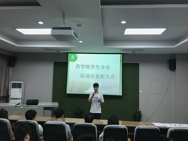2018年5月17日,藥學院團總支在藥學院三樓報告廳召開2018田徑運動會表彰大會,藥學院黨總支副書記呂忠田、藥學院團總支書記楊娜、藥學院學生分會主席和運動員代表參加了此次大會。