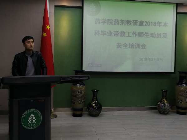 首先,羅國平老師介紹了2018年藥劑教研室承擔帶教任務(wù)的基本情況,明確了實驗室負責人和實驗室管理教師的分工和工作職責,同時還介紹了畢業(yè)帶教工作的日常管理。然后,陳程老師就實驗室安全進行詳細講解,包括實驗室設(shè)