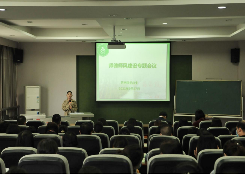 為了進(jìn)一步強(qiáng)師德師風(fēng)、促教風(fēng)學(xué)風(fēng),9月27日中午,藥學(xué)院在立德樓開展“師德師風(fēng)建設(shè)月”活動(dòng)之專題會(huì)議,藥學(xué)院黨政領(lǐng)導(dǎo)、全體教職工參加此次會(huì)議,會(huì)議由藥學(xué)院黨總支副書記王黎主持。