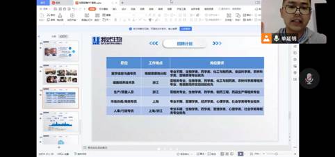 9月30日至11月10日,藥學(xué)院邀請(qǐng)魯南制藥、幸福制藥、暉致醫(yī)藥、恩華藥業(yè)、神威藥業(yè)、藥明津石、康龍化成、上藥科園、浙江我武生物、天士力、先聲藥業(yè)、金花企業(yè)、北京健次方、康哲藥業(yè)、豪森藥業(yè)、怡康醫(yī)藥、巨子生物、麗彩醫(yī)藥、麥科奧特、西安立迪生物、智飛生物、新綠色藥業(yè)等22家行業(yè)知名醫(yī)藥公司進(jìn)行空中宣講,崗位涉及醫(yī)藥研發(fā)、QA、QC、CRC、基因檢測(cè)、注冊(cè)專員、合成研究員、學(xué)術(shù)專員等領(lǐng)域;同時(shí)不斷收集并發(fā)布東科制藥,天博檢驗(yàn)、恒瑞醫(yī)藥、正大天晴藥業(yè)、齊魯制藥等多家用人單位的招聘信息,提供崗位百余個(gè)。