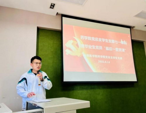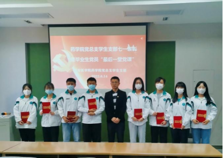 在即將迎來黨的七一生日之際,為進(jìn)一步緬懷黨的光輝歷史,弘揚(yáng)黨的優(yōu)良傳統(tǒng),強(qiáng)化對(duì)畢業(yè)生黨員的理想信念教育,6月14日,藥學(xué)院黨總支學(xué)生黨支部在立德樓報(bào)告廳舉辦“七一表彰”大會(huì)黨日活動(dòng)。藥學(xué)院黨總支書記王黎、黨政辦主任李冰、學(xué)生一支部書記袁欣、學(xué)生二支部書記魏豐、輔導(dǎo)員劉珍及全體學(xué)生黨員參加會(huì)議,會(huì)議由袁欣主持。